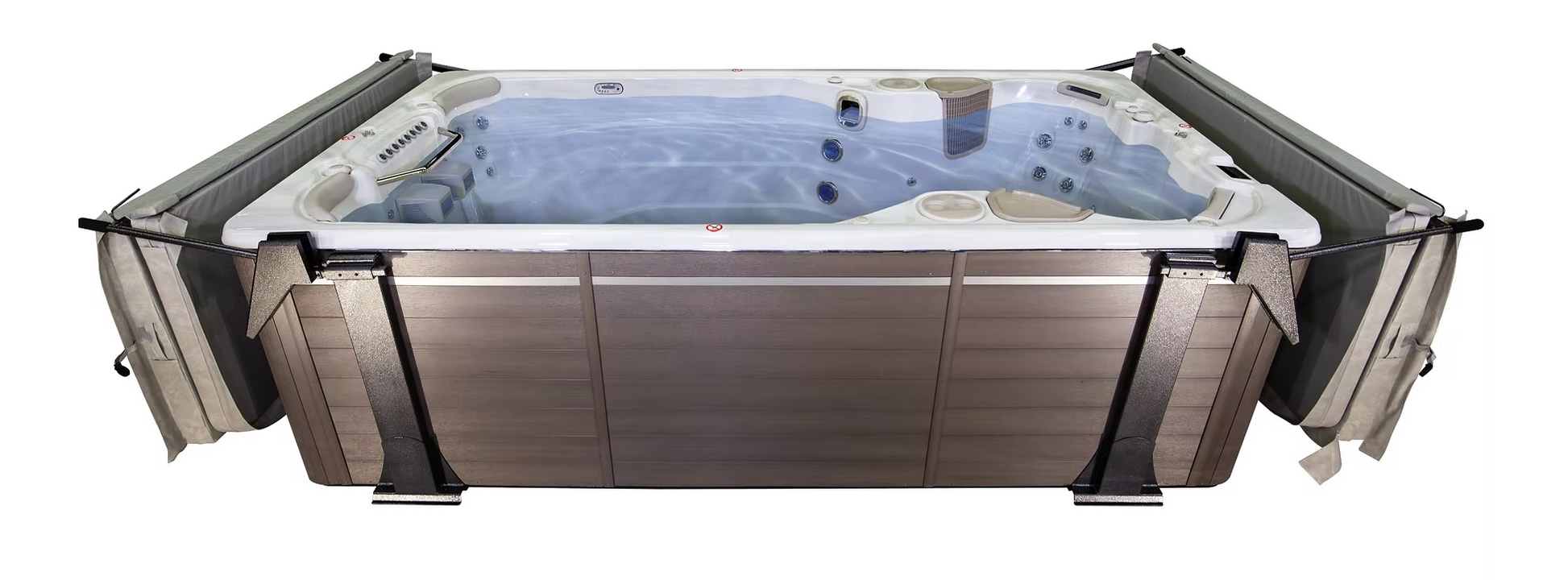The Aqualift is a reliable and easy-to-use cover lifter designed specifically for swim spas. With hydraulic assistance on both ends, it makes lifting heavy bi-fold covers smooth and manageable from either side—no drilling into your spa cabinet required.